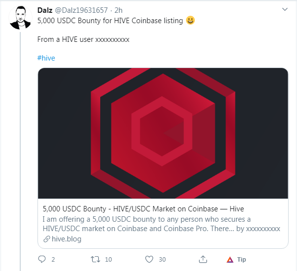 10K USD Bounty for HIVE listing on Coinbase