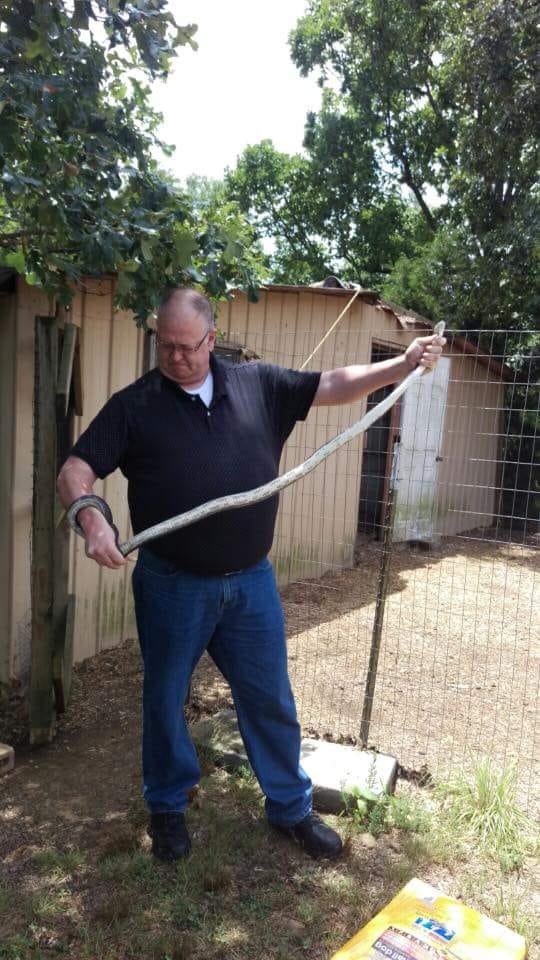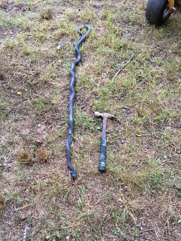 A few days later yet another snake in our coop! even after "Snake Away" spread everywhere... I know what you are thinking, surely you got them all. Well a week later we got what we think is the last one. Note the bulge in his belly, it's a ceramic egg.