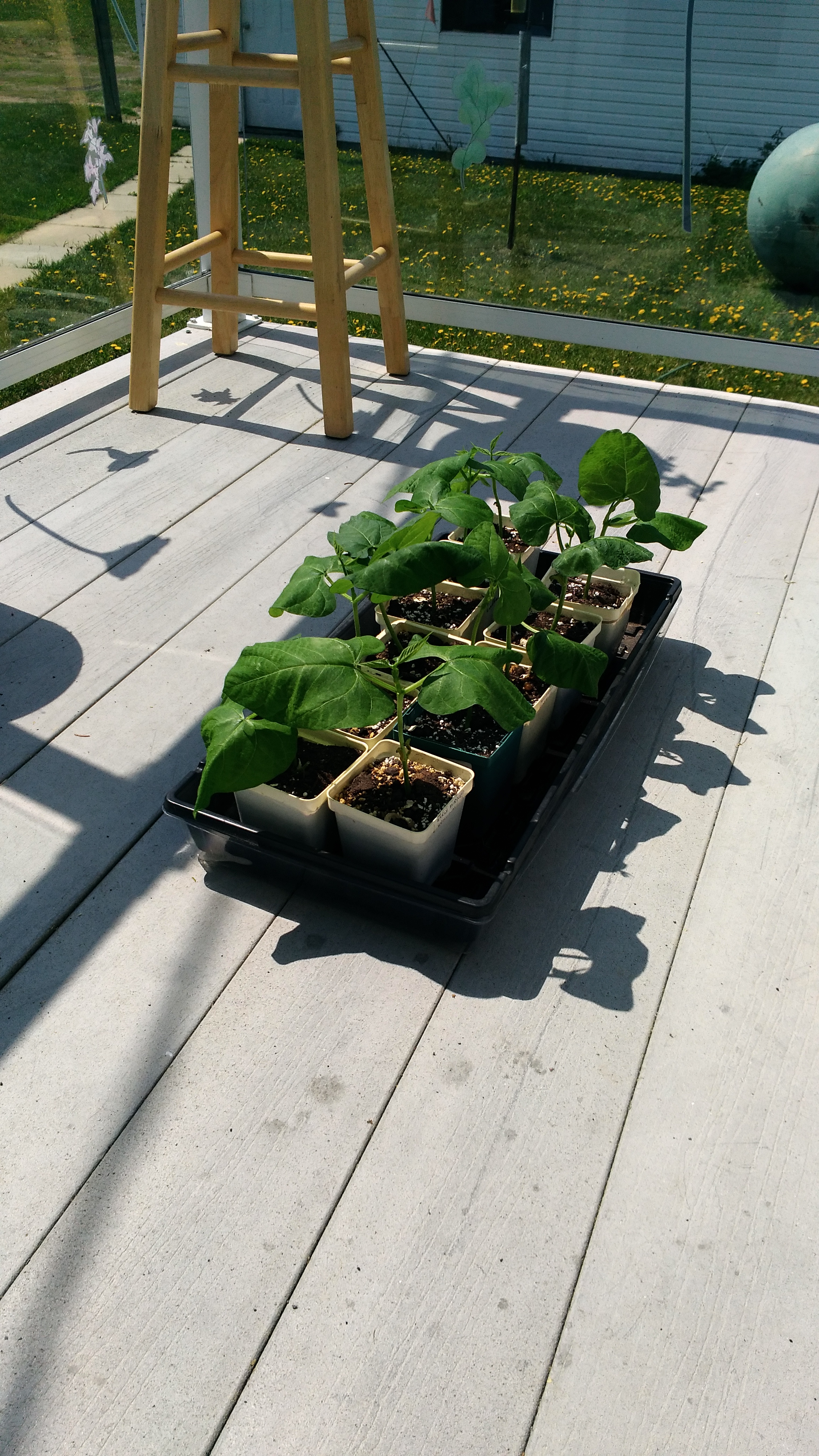 Here is the start of my garden. Those are green bean plants, and they are very ready to be moved into the garden.