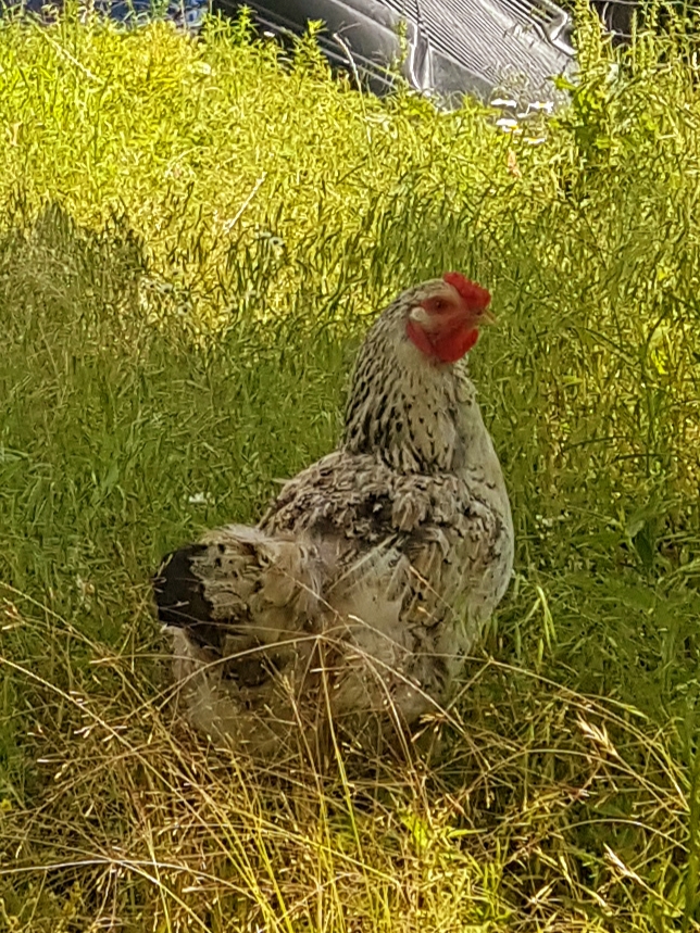 He and his ladies are free range, and we only throw out a little grain to keep them scratching. I love having chickens, we havent bought a single egg in 2 years, and its a great feeling to be able to have small victories on a homestead. Stay well steemians!!