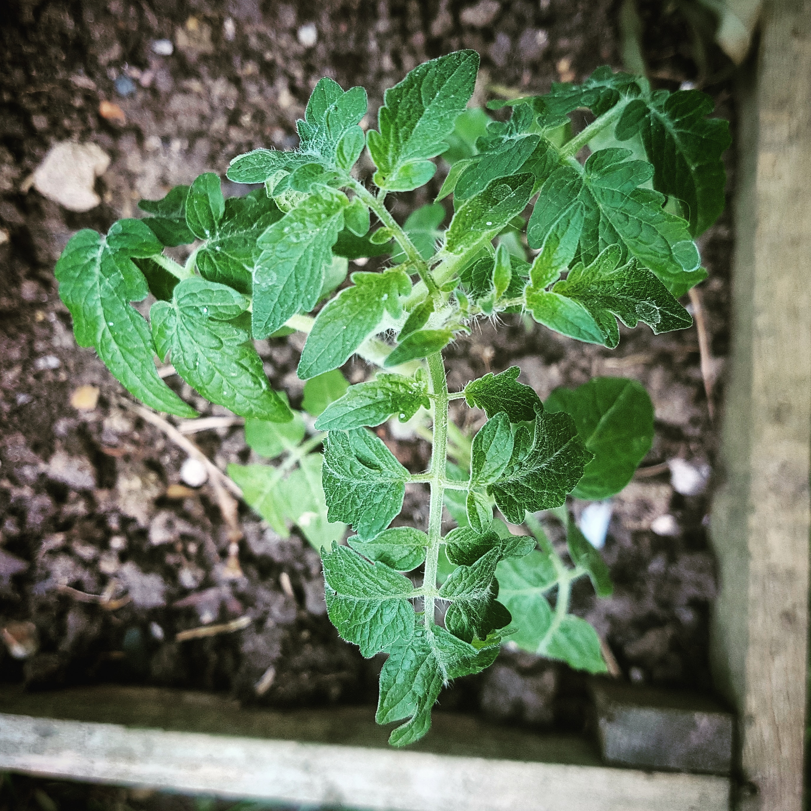 My raised beds are mostly devoted to salad crops this year. It wasn't as I intended, but it's come to be. I have six crops at the moment; two in each bed. Radishes, rocket, Tom Thumb lettuces, tomatoes, Salad Bowl Red lettuces and spring onions.