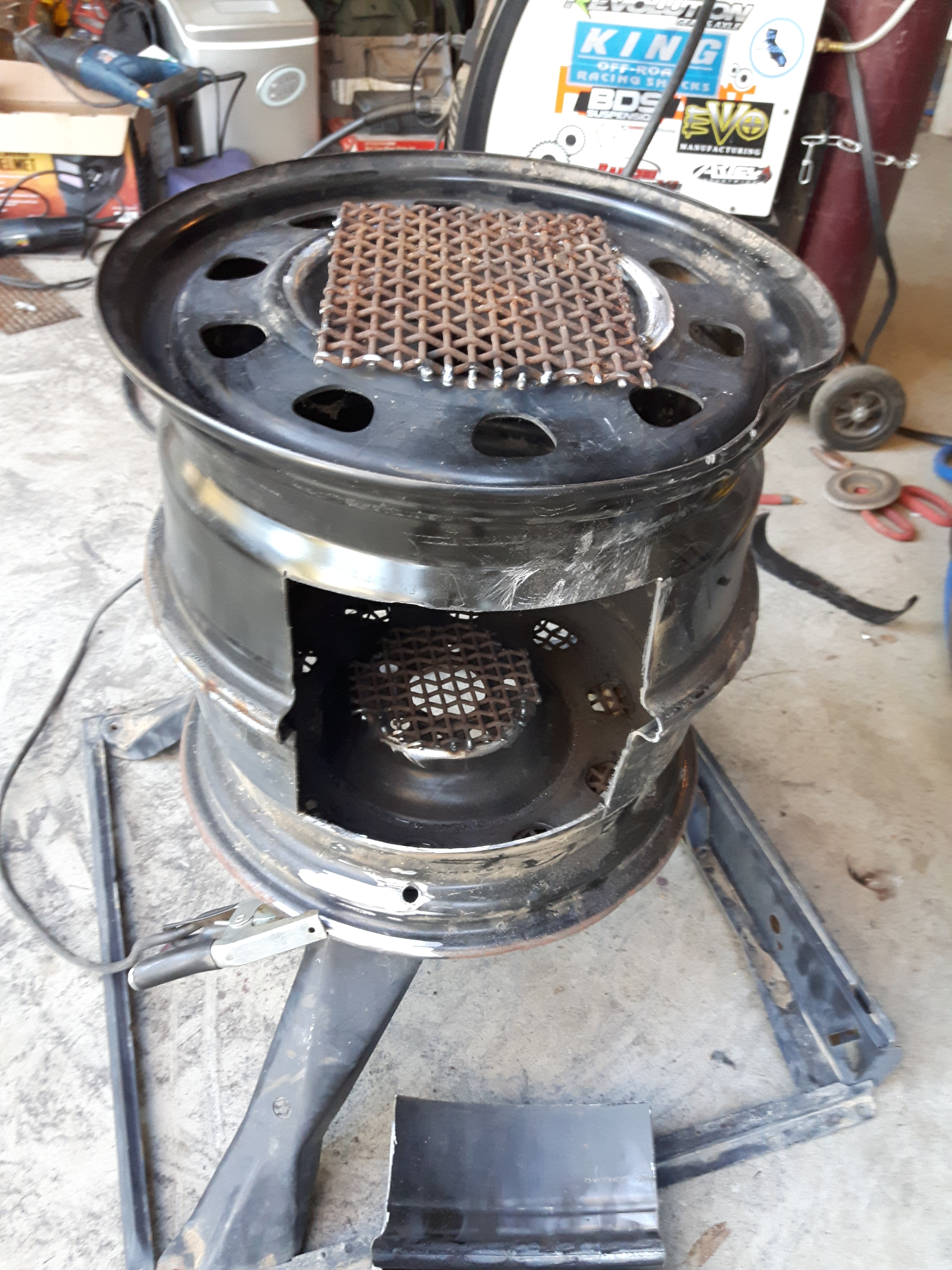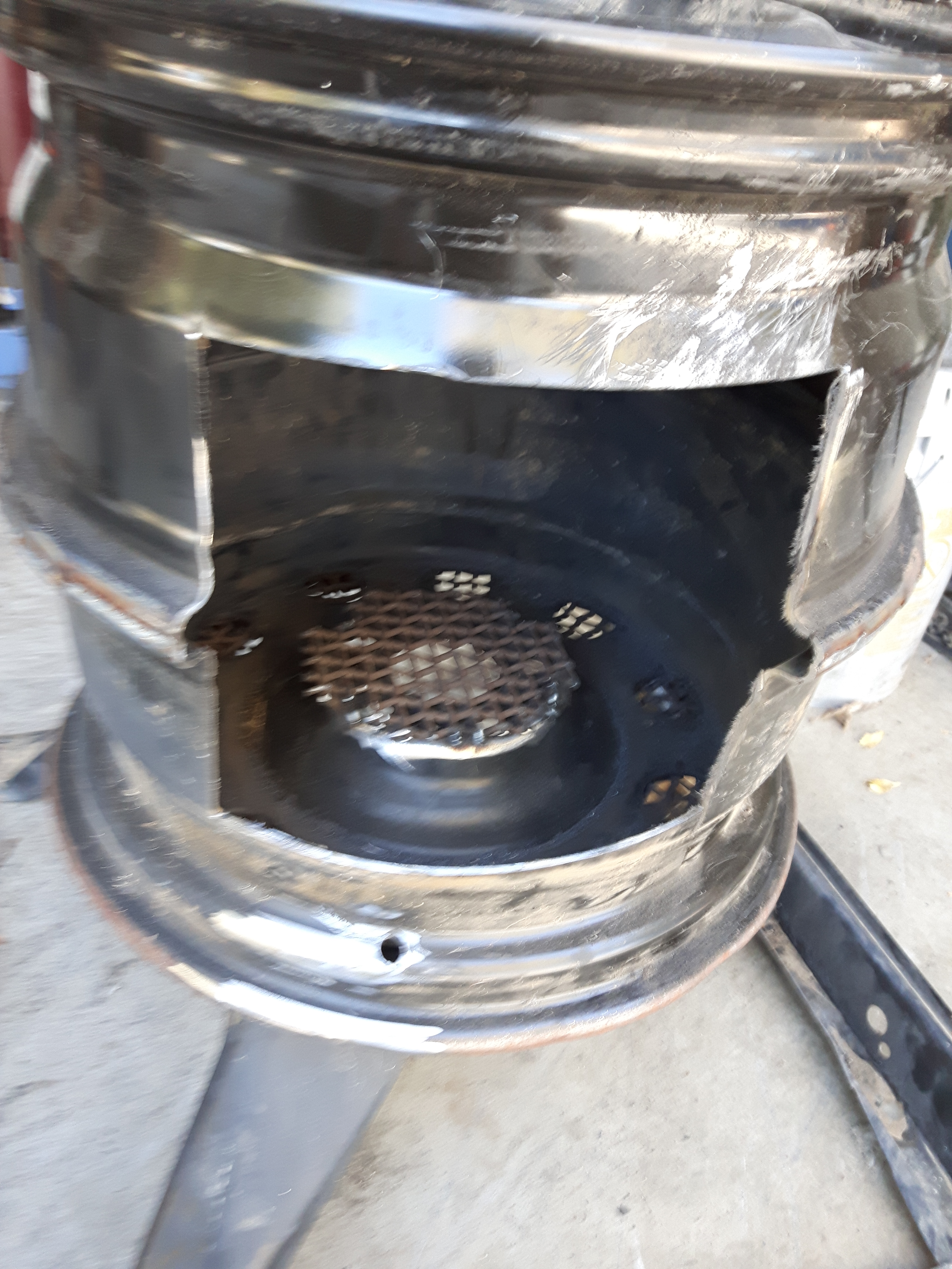 I only tack welded this stand due to the fact that there were only a few points of contact between the rim and stand. The square nature of the stand made it ideal for keeping the stove sturdy.