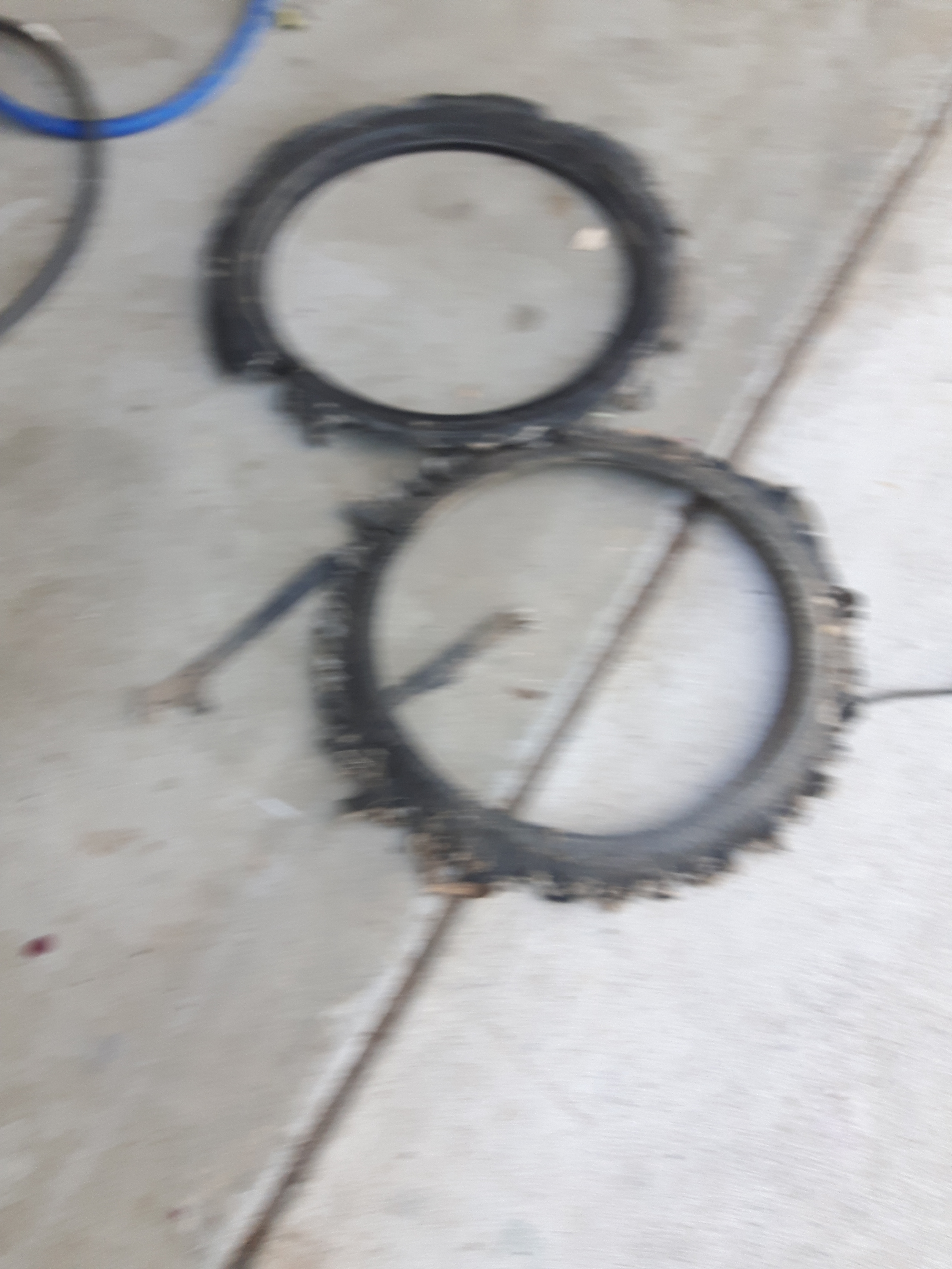 The tires needed to be separated from the wheels. I have de-beaded tires before and these tires made zero sense. Usually when a tire looses its bead it can just pop off the rim. Not this case. One side of the wheel would de-bead fine but the other was "glued" to the wheel. When I say "glued", I mean they were adhered somehow to the rim and I actually needed to cut through them to get them to pop off.