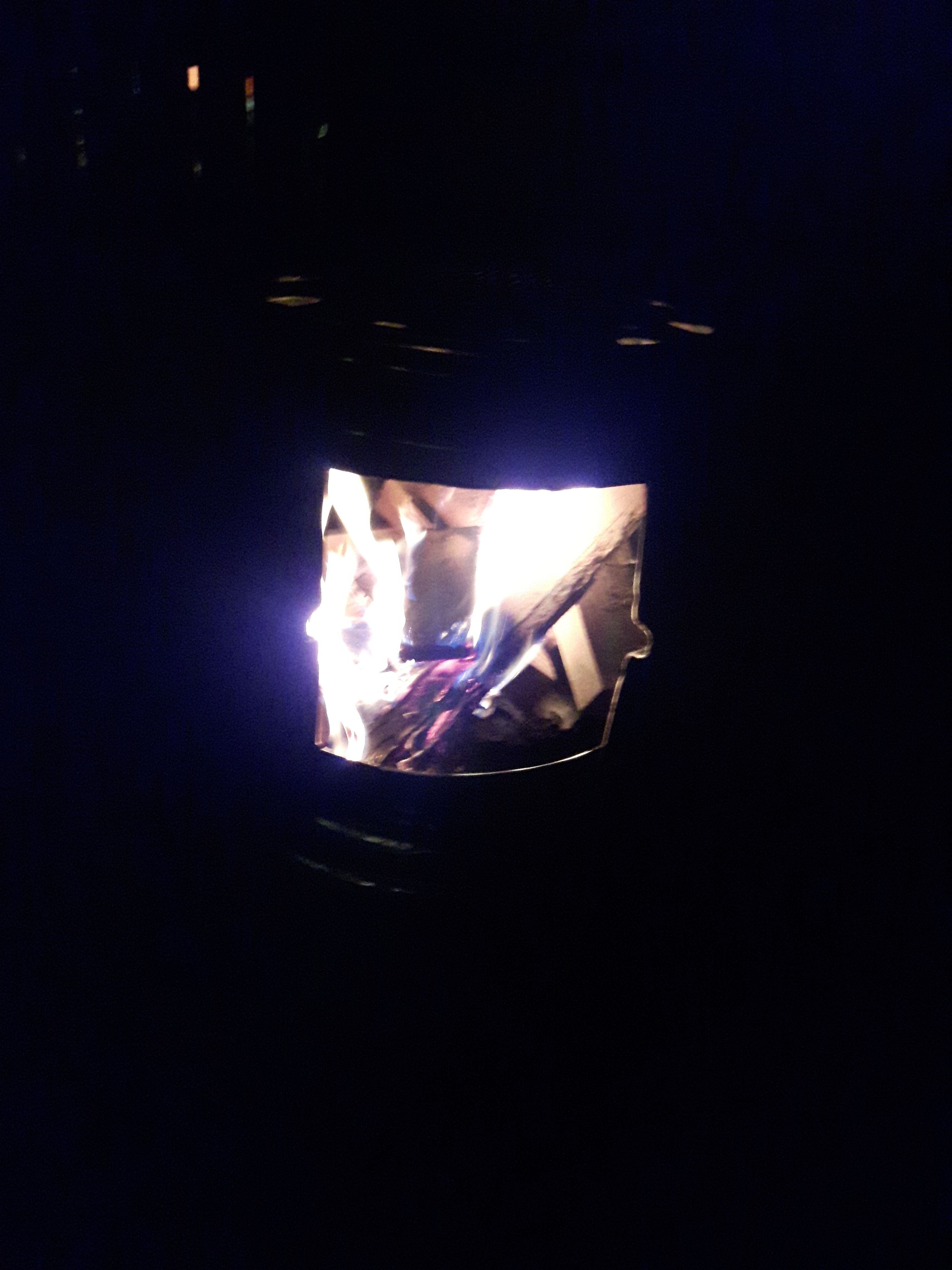 The stove seemed to work very well without the door. After dinner we sat by the fire under the stars before calling it a night.