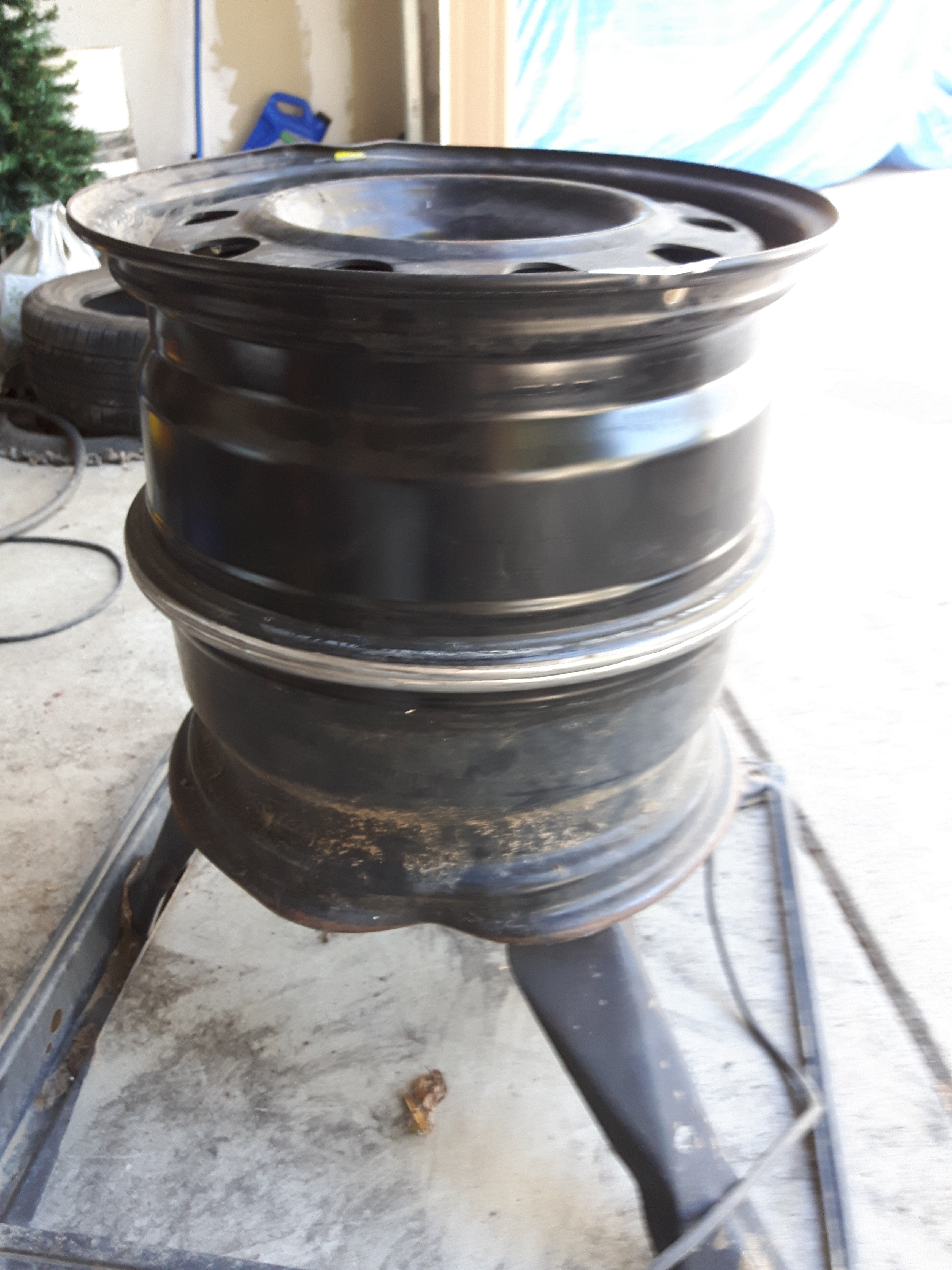 Hey everyone! A little while back @beckymeep was in an accident where both of her front tires popped off the rims and were bent and destroyed. She purchased new ones and was back on the road but I had the crazy idea to keep them for something. Almost a year later, I decided to utilize the wheels for a fire stove to go out in the back yard. The wheels had been sitting at @derekrichardson's house the entire time and he was happy to have me claim my junk property. Over that time I had also accumulated a giant stack of fire wood for camping trips. That wood was perfect for this stove, as I've been sitting on it so long I need to cycle it out.