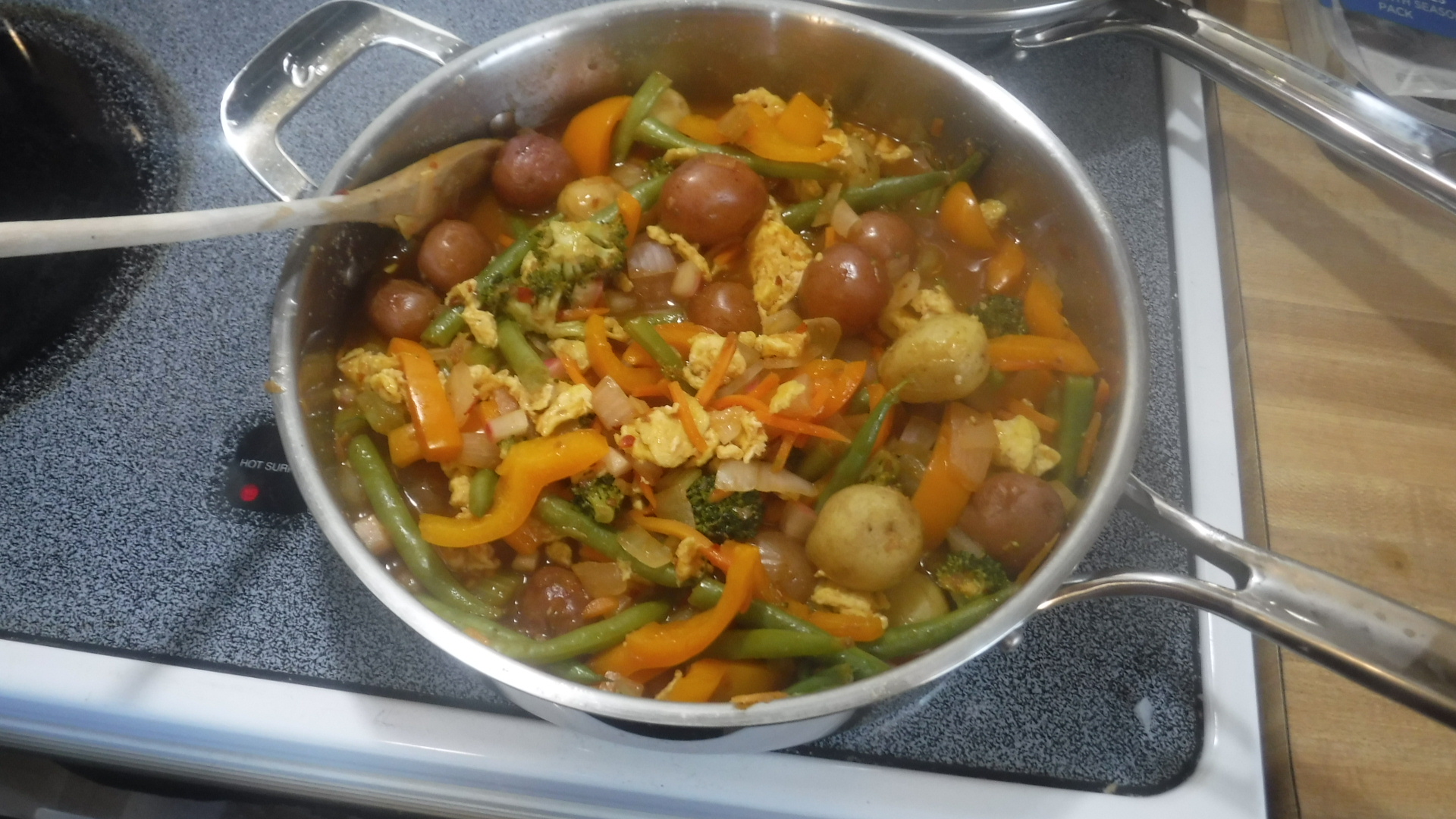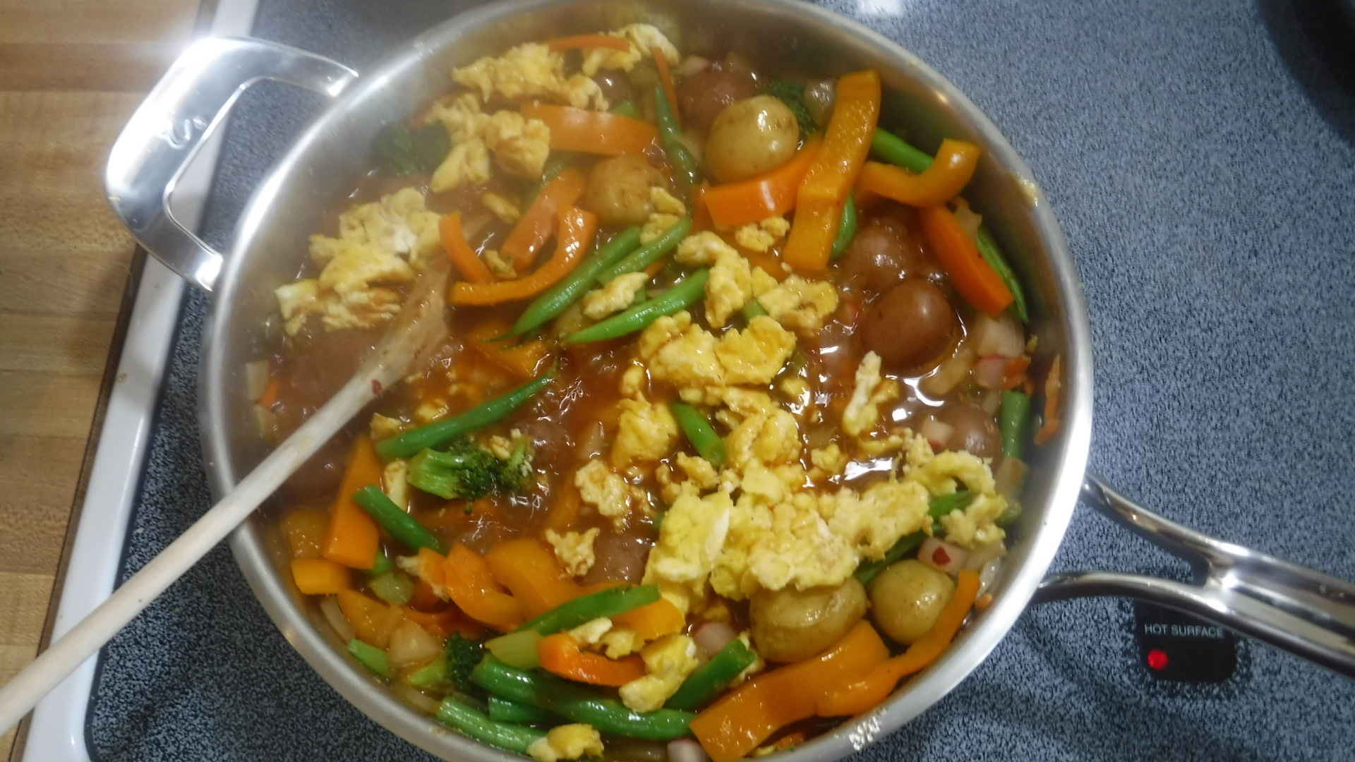 By the time the eggs were done it was time to add them to the stir fry mix..
