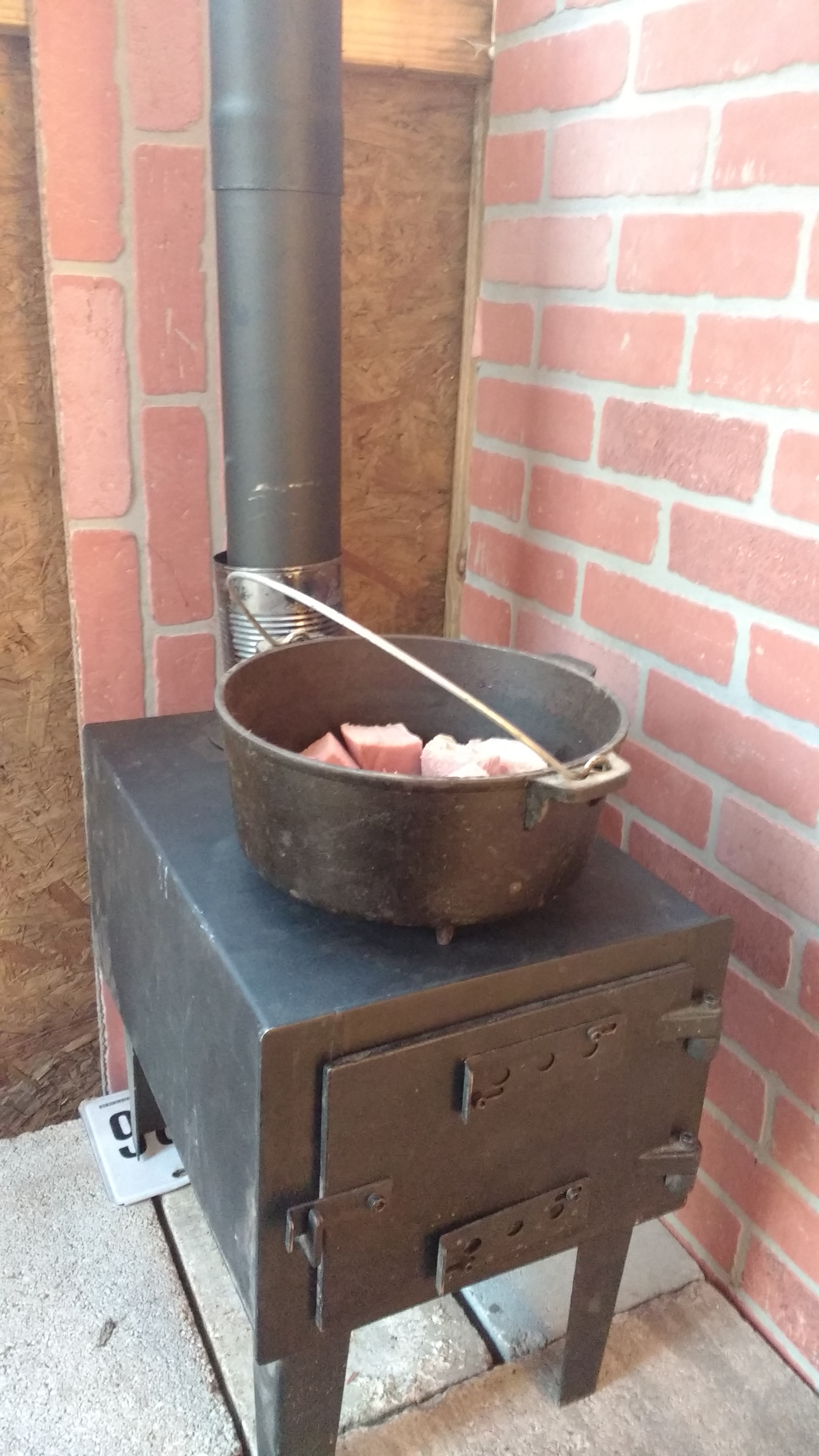 We are progressing along on the Camp Cabin! I am really so pleased with all that we have been doing. Recently, we have installed the ceiling, and the woodstove, as well as put the heat resistant wall up behind the stove! The stove is drafting well, and tonight with a strong cold front in the area, it kept us toasty warm, as well as cooked our dinner of ham and green beans! Here are some pictures from the last few days!
