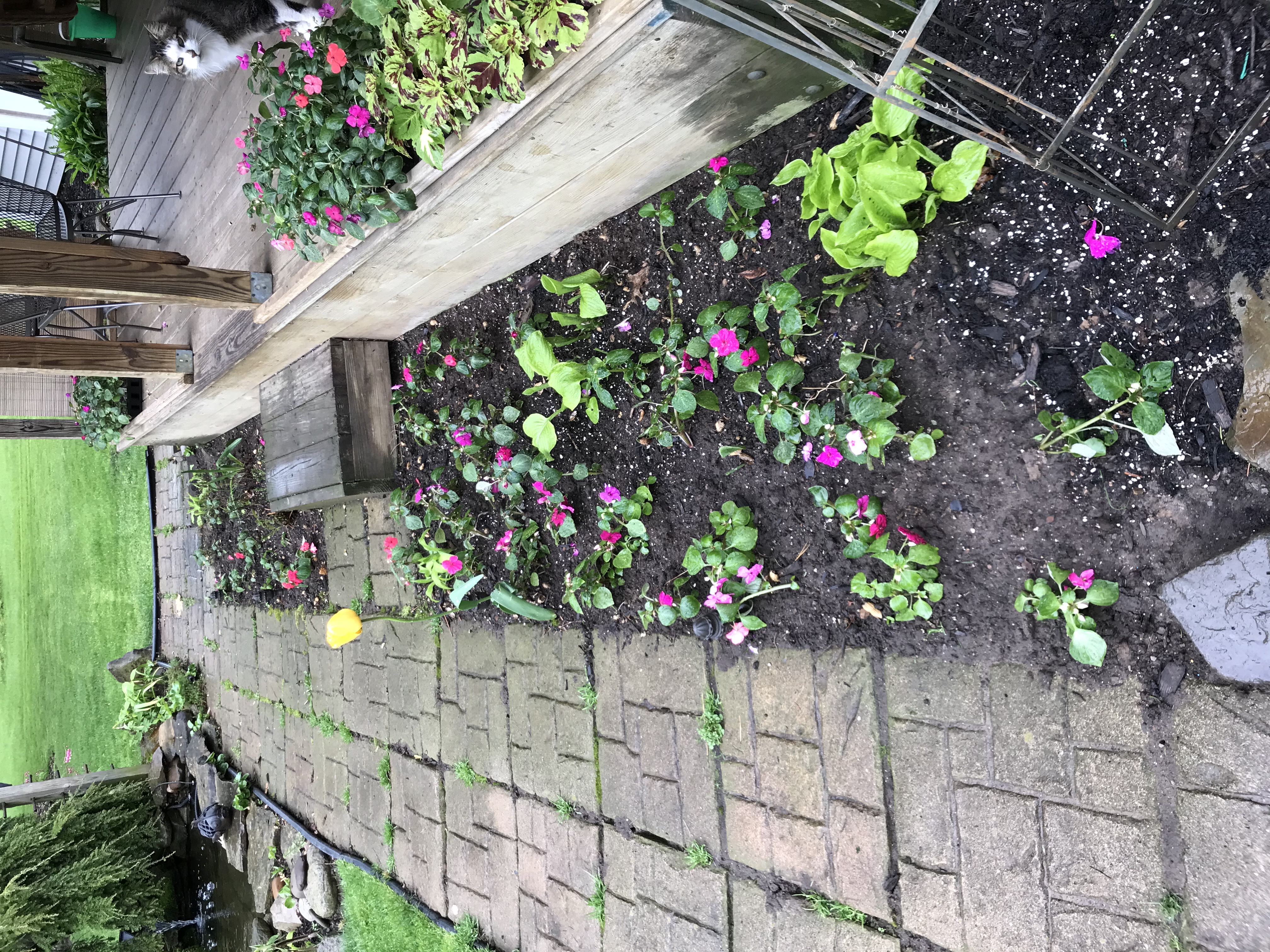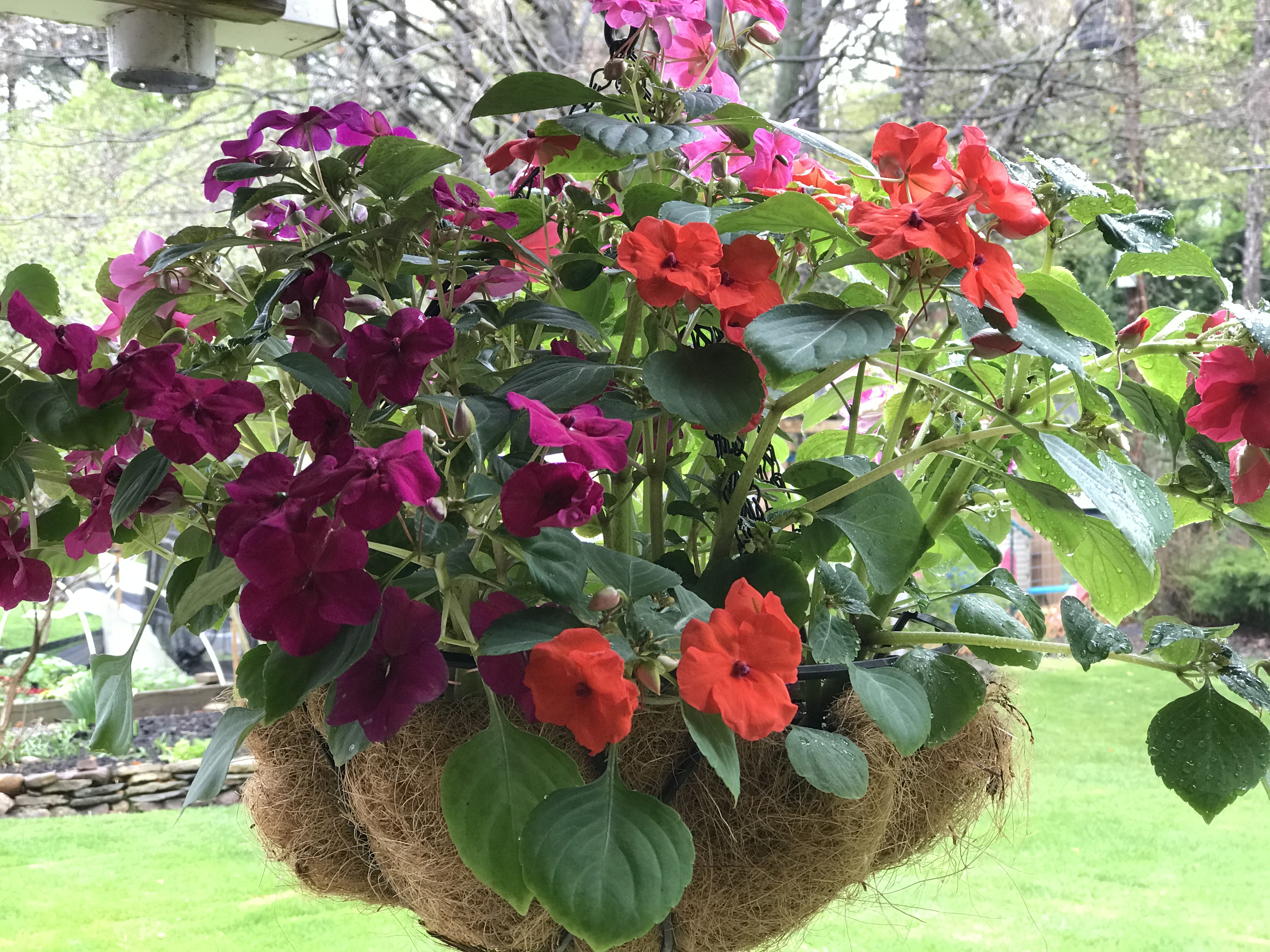 All the impatiens were put in around the back porch and my hanging baskets were put out too.