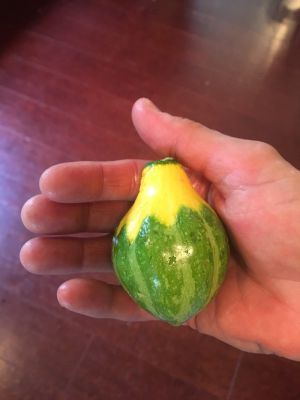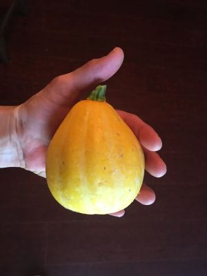 We also grew lemon squash this year. Lemon squash taste kind of like a zucchini: