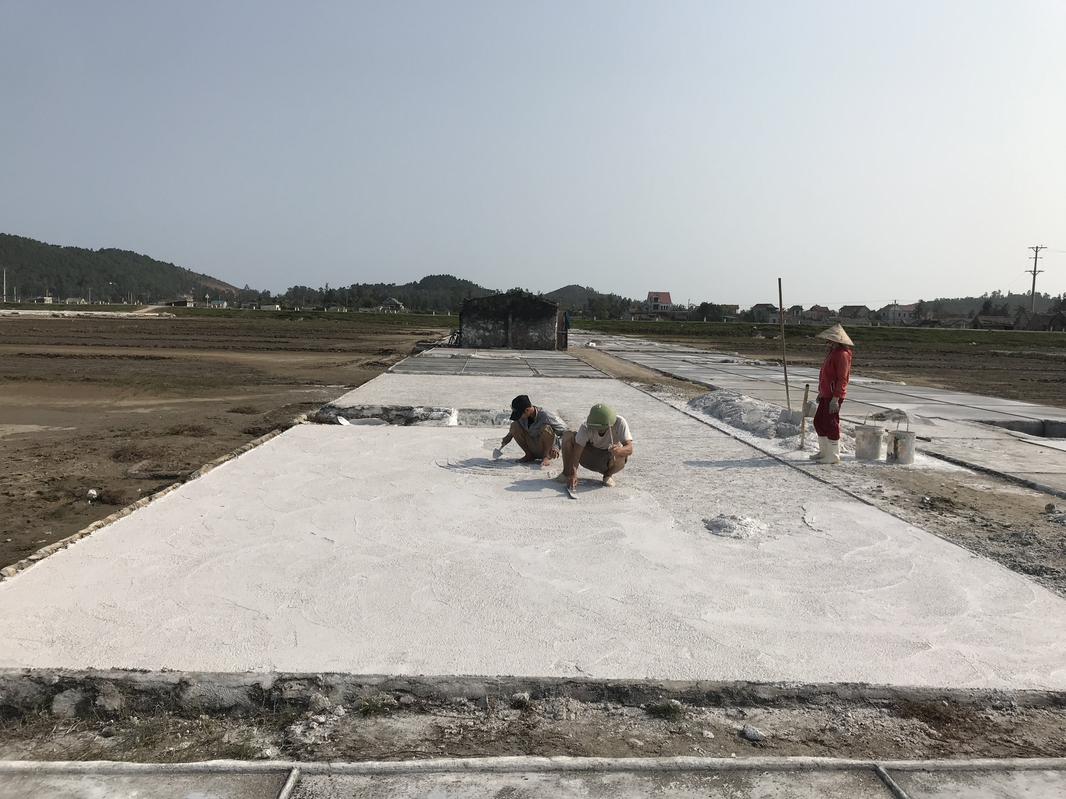 The image is the salt farmers who are preparing for a new salt season. If you produce salt in a day, it is really difficult to finish that salt for 10 years.