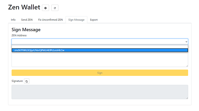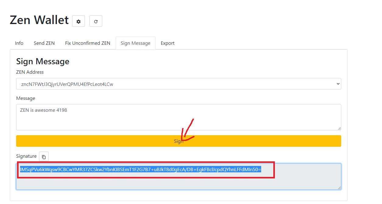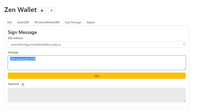 Myzenwallet - Web Wallet Sign a Message