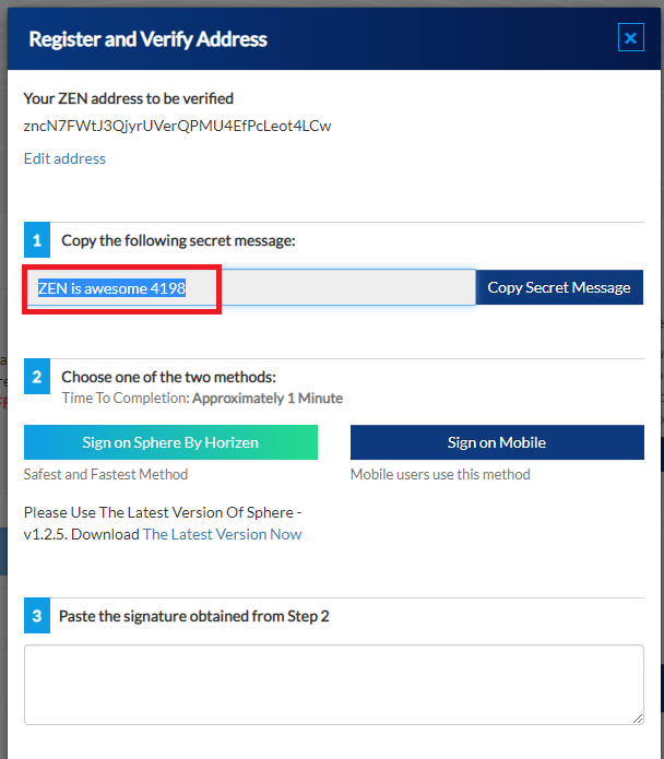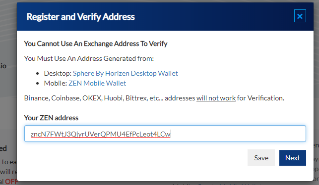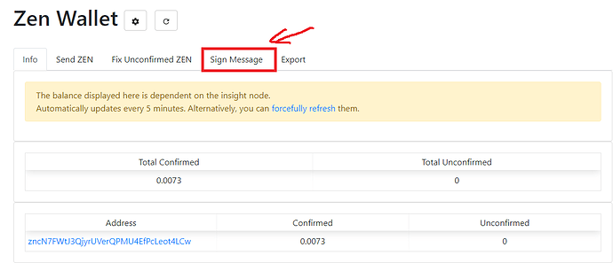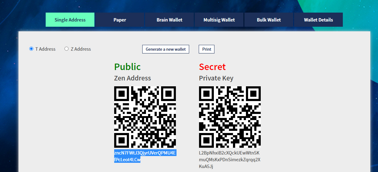 I will use ZEN address created using Paper wallet in the previous example: