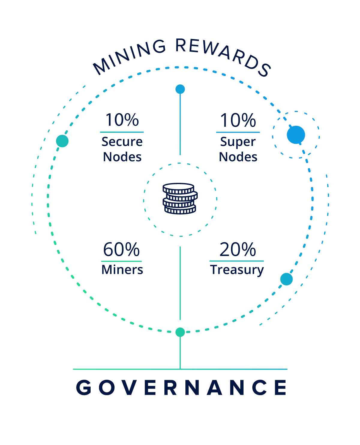 Ovaj potpuno decentralizovani sistem sa upravom utemeljenom u zajednici, koristi kombinovane ekonomsku teoriju, teoriju igre, „likvidnu“ demokratiju i najnovije tehnologije za ostvarivanje privatnosti za podelu sredstava iz trezora. Sve, inače ekonomski motivisane, „stakeholder“ interesne grupacije će biti pokretači evolucije ove platforme, stvarajući preduslov za skoro pa beskonačnu samoodrživost ovog decentralizovanog ekosistema.