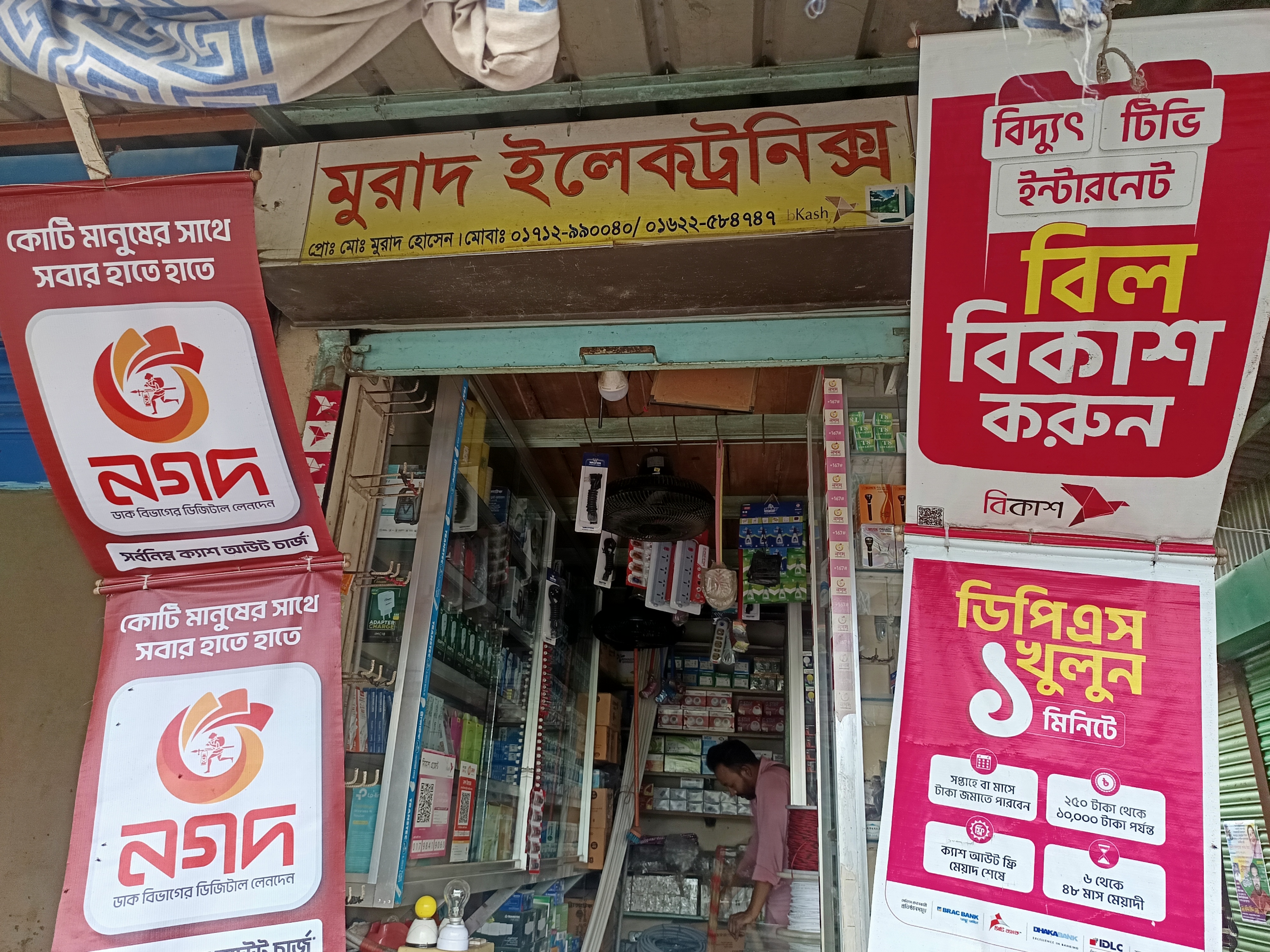 Murad Electronic is a shop located in Manikganj, Nayadangi, next to Kaitta Bazar. There are all kinds of electronic items here. The products that are used in electrical work. All of them are available here, although the shop is small. In large quantities, but there are all kinds of electronics here. Everything that is needed for the house. When you build a new house, all kinds of new electronic products are needed. Where everything that is needed for all current is available here, switch bulbs, these electronic items are a very important product for us.