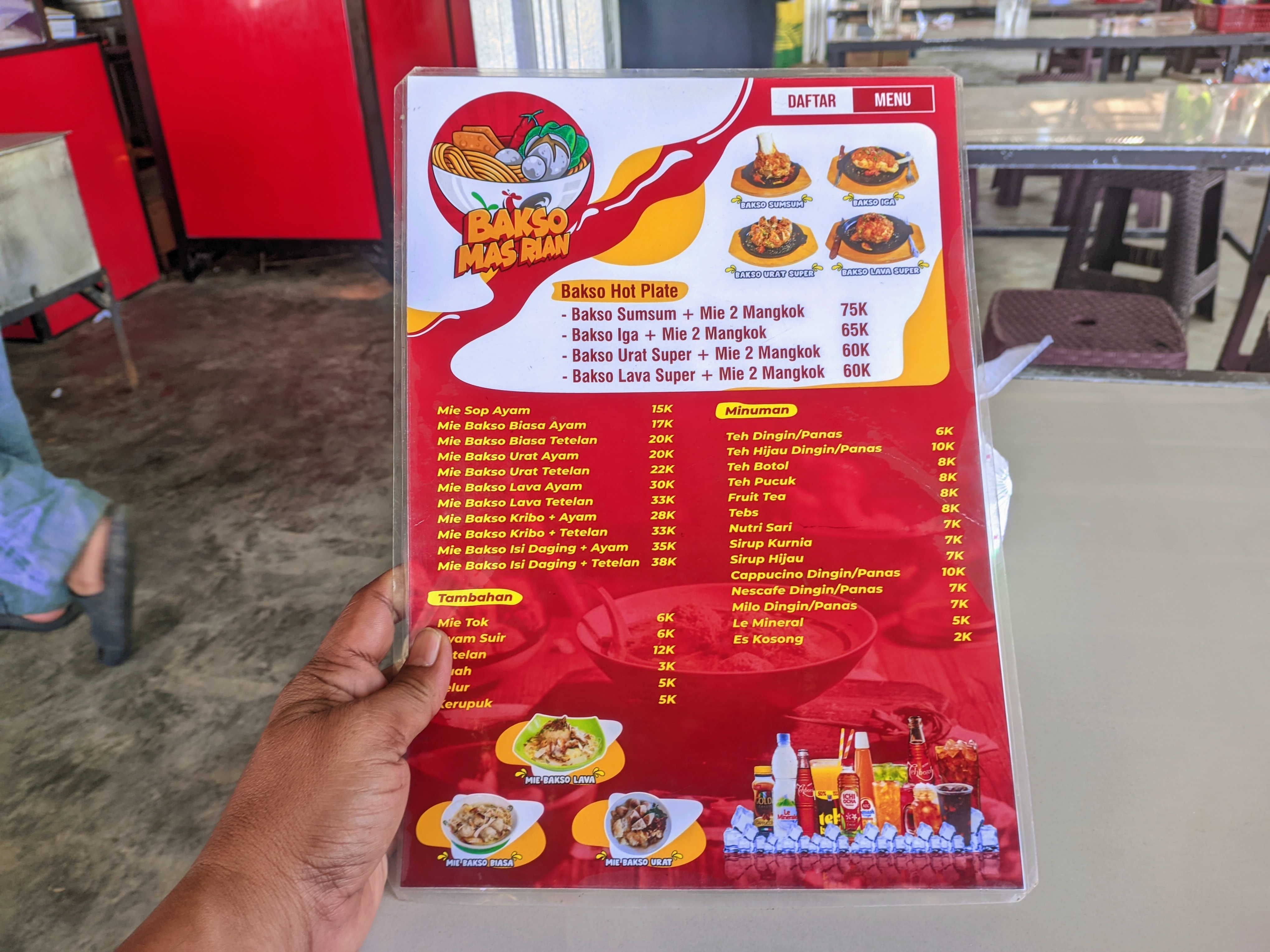 Saya datang ke Bakso Mas Rian untuk membeli 2 porsi bakso andalan mereka, berikut rincian bakso yang saya pesan: