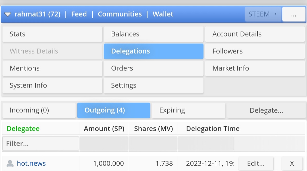 Maka dari itu aku sangat ingin bergabung dengan komunitas karna ingin berkembang bersama dengan satu tujuan. Selain itu juga aku sudah berkontribusi dengan komunitas ini melalui delegasi steem power yang aku miliki, walaupun tidak seberapa banyak jumlah yang aku delegasi akan tetapi cukup membantu komunitas ini untuk semakin berkembang kedepan nya.