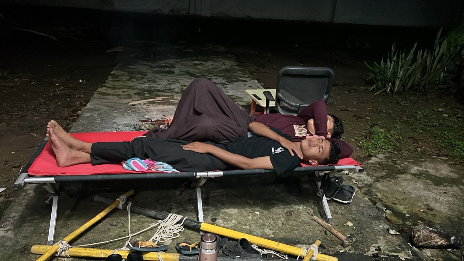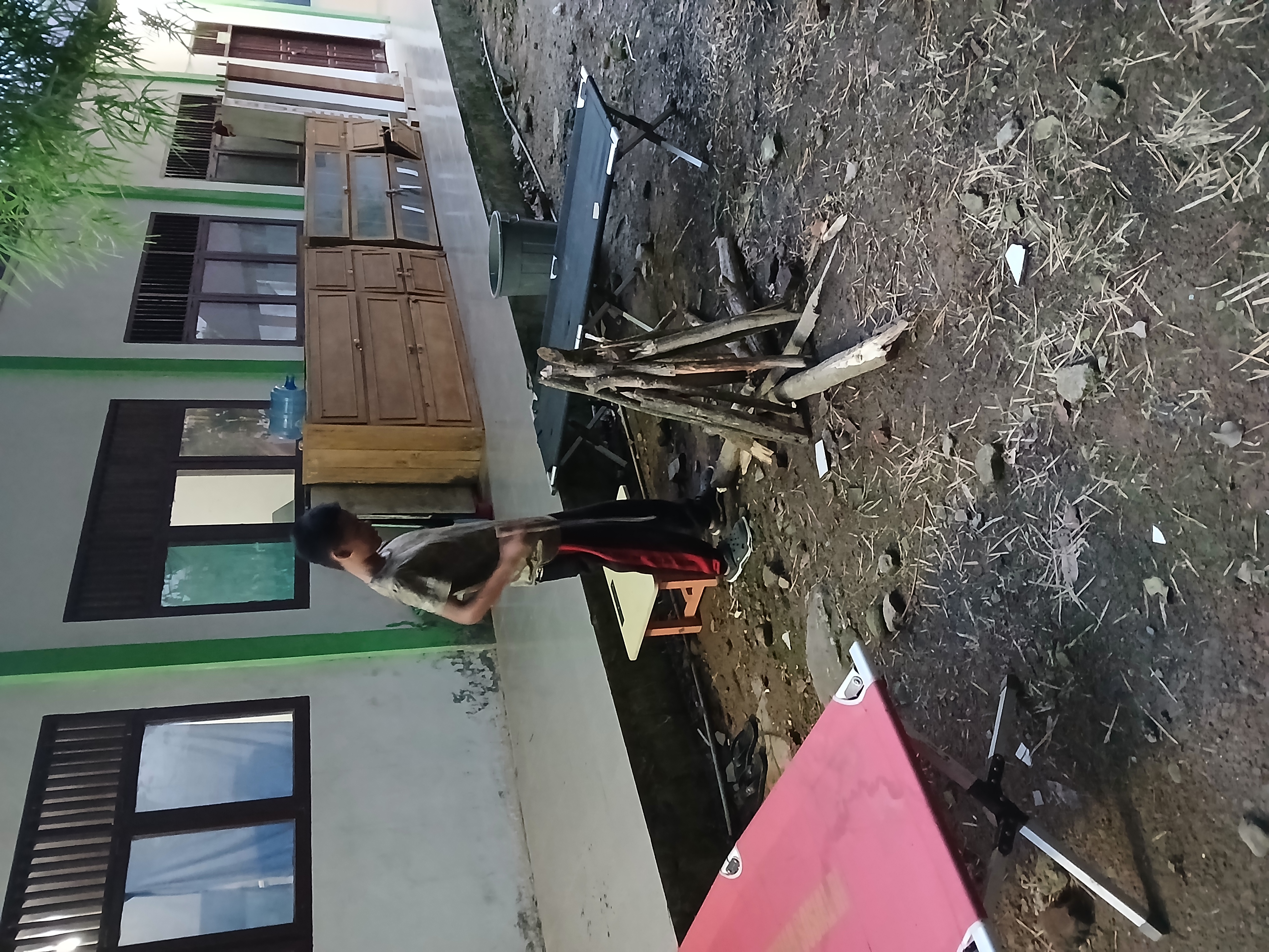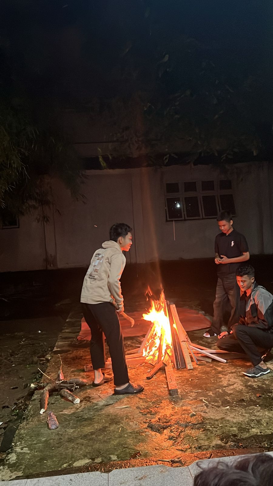 Setelah hujan nya reda pada pukul 20.45 WIB, kami langsung pergi sekolah. Sesampainya di sekolah, ternyata tempat yang kami siapkan untuk bersantai sudah tergenang air, dan kayu buat bakar pun sudah basah. Terpaksa kami harus memindahkan tempat bersantai dan mencari kayu bakar yang kering.