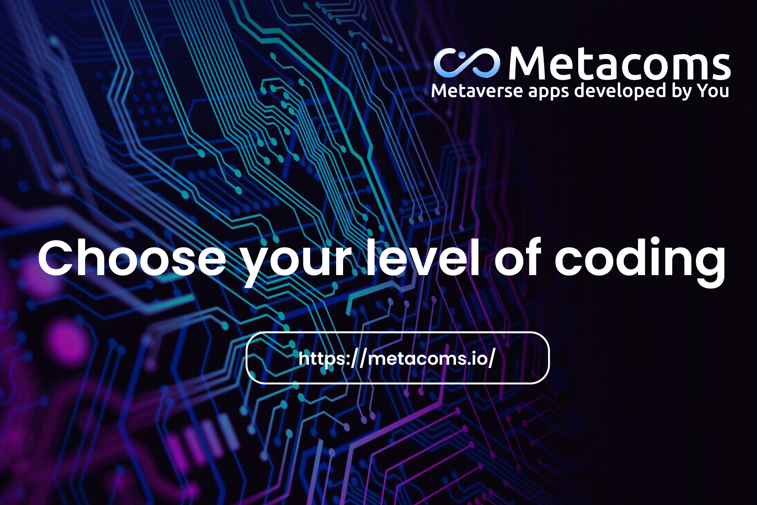 Metacoms opens up Metaverse for all app creators to make any kind of VR experience. Choose your interface to create an app. There are options for all: easy with no need for coding, medium with some coding, professional, or external for the experienced coder. Mine your Metaverse apps to NFTs and start using or selling them in your own space and on the NFT marketplace.