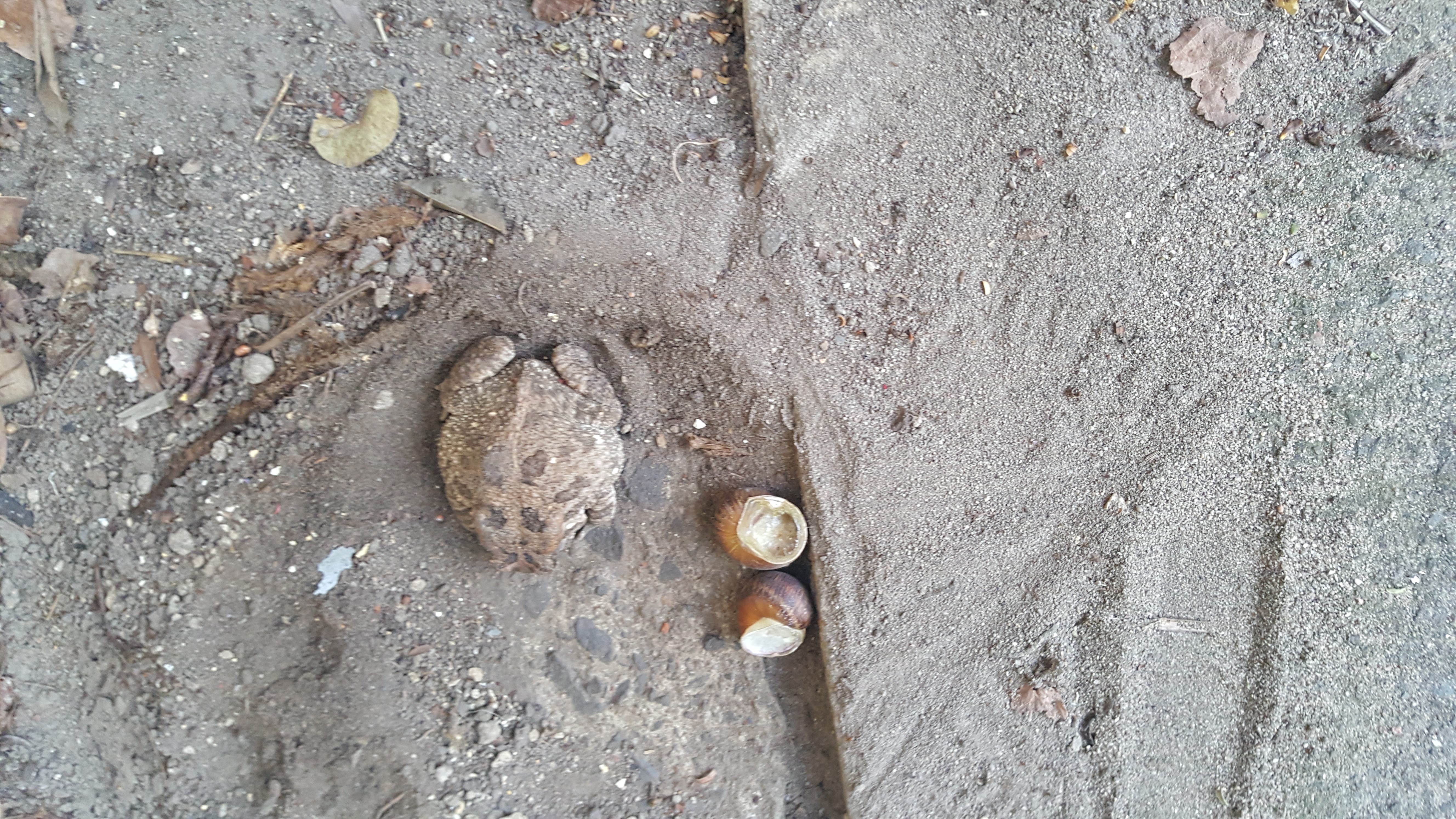 This was very interesting I had a bucket and it was lying there where you see the frog and 2 snails under the bucket for more than a year. Now I lifted the buckets and there was another big bucket also on top of the round bucket, when I picked it up the big frog was lying just there with his two friends. Now I would really like to know what did they had in common, to lie there for more then a year, it looked like the frog was sleeping. Then that Cat of mine, woke him up and started to play with him and chase him around the trees. Under the leaves and the frog is on the one side and the Cat on the other side. Very interesting do you know that I think the frog had those two snails ready for his dinner or something like that in the winter. It is not very cold here in our Sunny Margate but for us it is very cold some days.