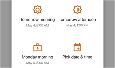 Choose the date and time you want Gmail to send the email. As on desktop, you can choose an option like “tomorrow morning” or pick a specific date and time.