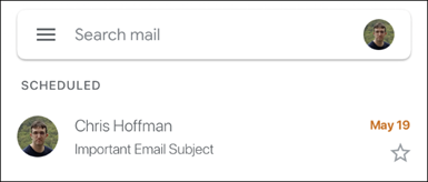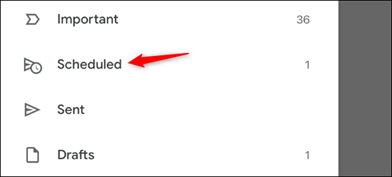 In the Gmail app for iPhone or Android, tap the menu button at the top left corner of the screen and then tap “Scheduled” in the sidebar menu.