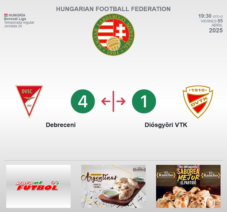 ⚽ DEBRECENI 4️⃣ 🆚 1️⃣ DIÓSGYÖRI VTKparaelfutbol (34)in #hungria • last year 🇭🇺 Hungría 🏆 Borsodi Liga ➡ Temporada regular 🗓 Jornada 26 ⚽ DEBRECENI 4️⃣ 🆚 1️⃣ DIÓSGYÖRI VTK 🏁 .... es FINAL 🌎 www.paraelfutbol.com #borsodiliga #debreceni #diosgyorivtk #futbol #paraelfutbol #pef #sport