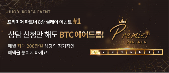 후오비코리아(Huobi Korea) - 프리미어 파트너 8종 릴레이 이벤트 #1 (BTC 에어드롭 이벤트)