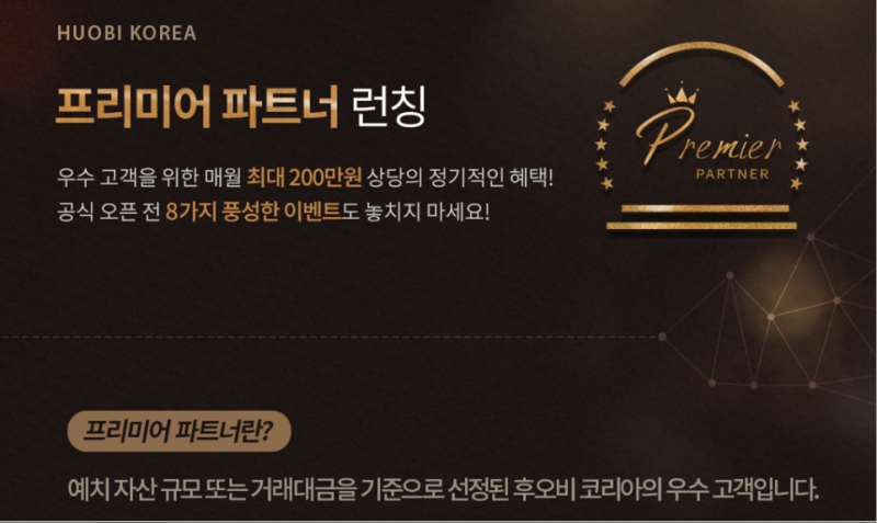 후오비 코리아(Huobi Korea)에서 프리미어 파트너를 런칭했습니다.