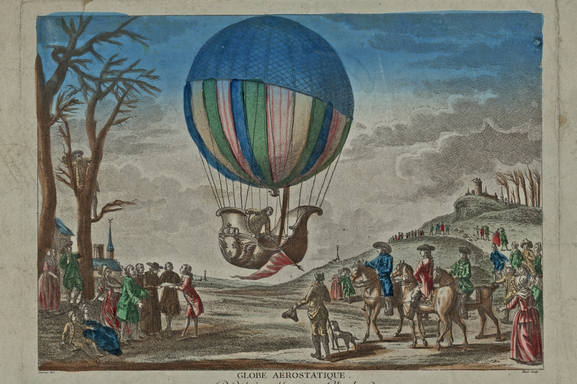 An 18th-century hydrogen-filled balloon takes off. / Library of Congress
