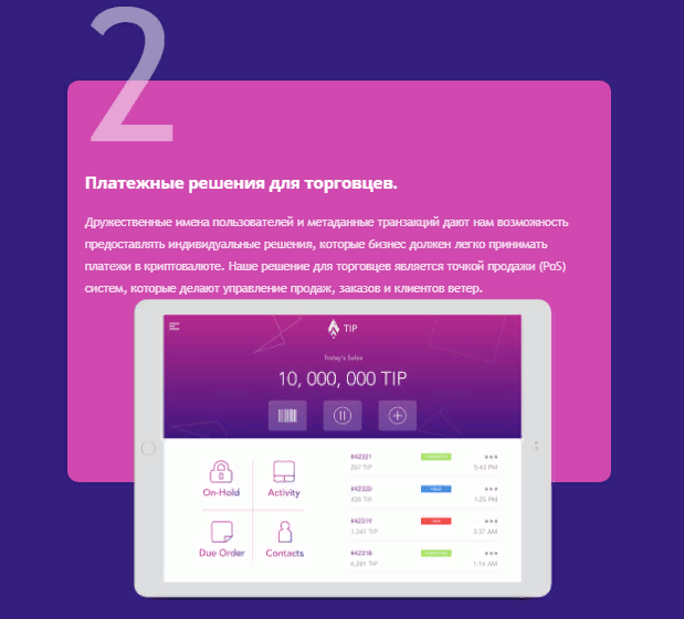Tip Blockchain makes the execution of all necessary transactions incredibly simple and convenient, it will allow many sellers to find their customers, and buyers – to purchase the necessary goods and services, using the capabilities of the cryptocurrency. The developers have added a special internal chat, as well as a wallet, so that users of the Tip Blockchain platform can freely discuss the terms of transactions, as well as perform all necessary transactions.