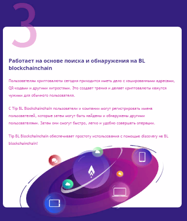 The second feature is the Ease of searching. It will be very easy and convenient for customers to use Tip Blockchain in order to find the required transactions. Sellers provide their data, which the system indexes-in the future, customers can quickly find the best deals, based on their own needs. A special chat allows not only to exchange the necessary information, or just to conduct a dialogue, but also to transfer the internal currency of the platform. This allows you to save your own time on additional transactions.