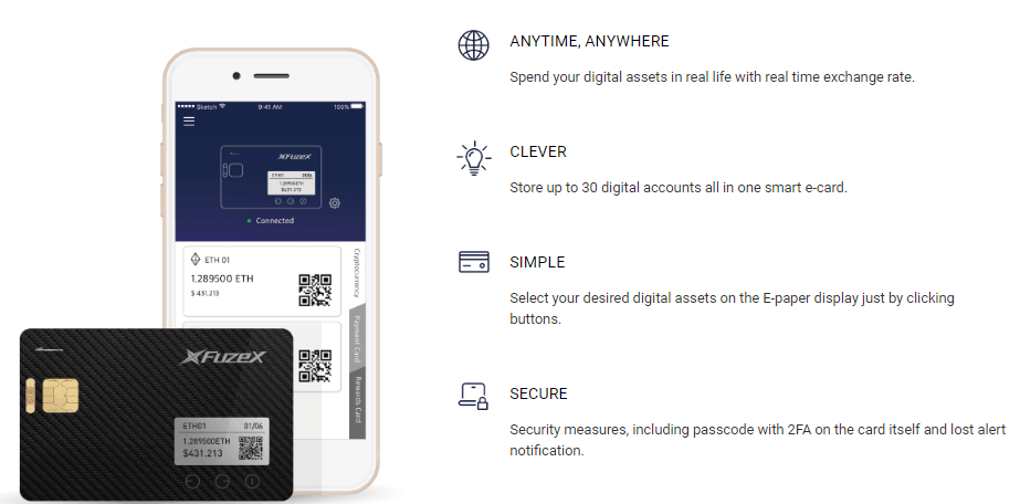 Once users connect their FuzeX cards and e-wallets they'll be able to pay while not having to use their smartphone. The on top of 2 mix along to create a tough notecase for the storage of personal keys with fragmented keys being encrypted and hold on between them.