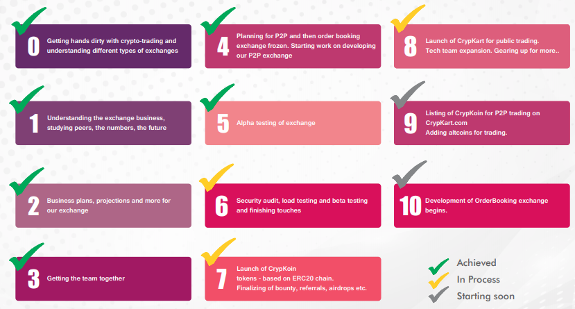 Didesain oleh trader dengan pengalaman trading yang cukup banyak, lebih dari 1000 btc dan ratusan alt coin, visi Crypkart adalah untuk menjadi pemimpin dalam perdagangan mata uang kripto. Pertukaran ini akan menjadi yang pertama menyediakan peer to peer dan pemesanan crypto, yang keduanya digulirkan menjadi satu. Crypkart juga menyediakan daftar beberapa mata uang kripto dan modul manajemen bisnis untuk para pedagang.