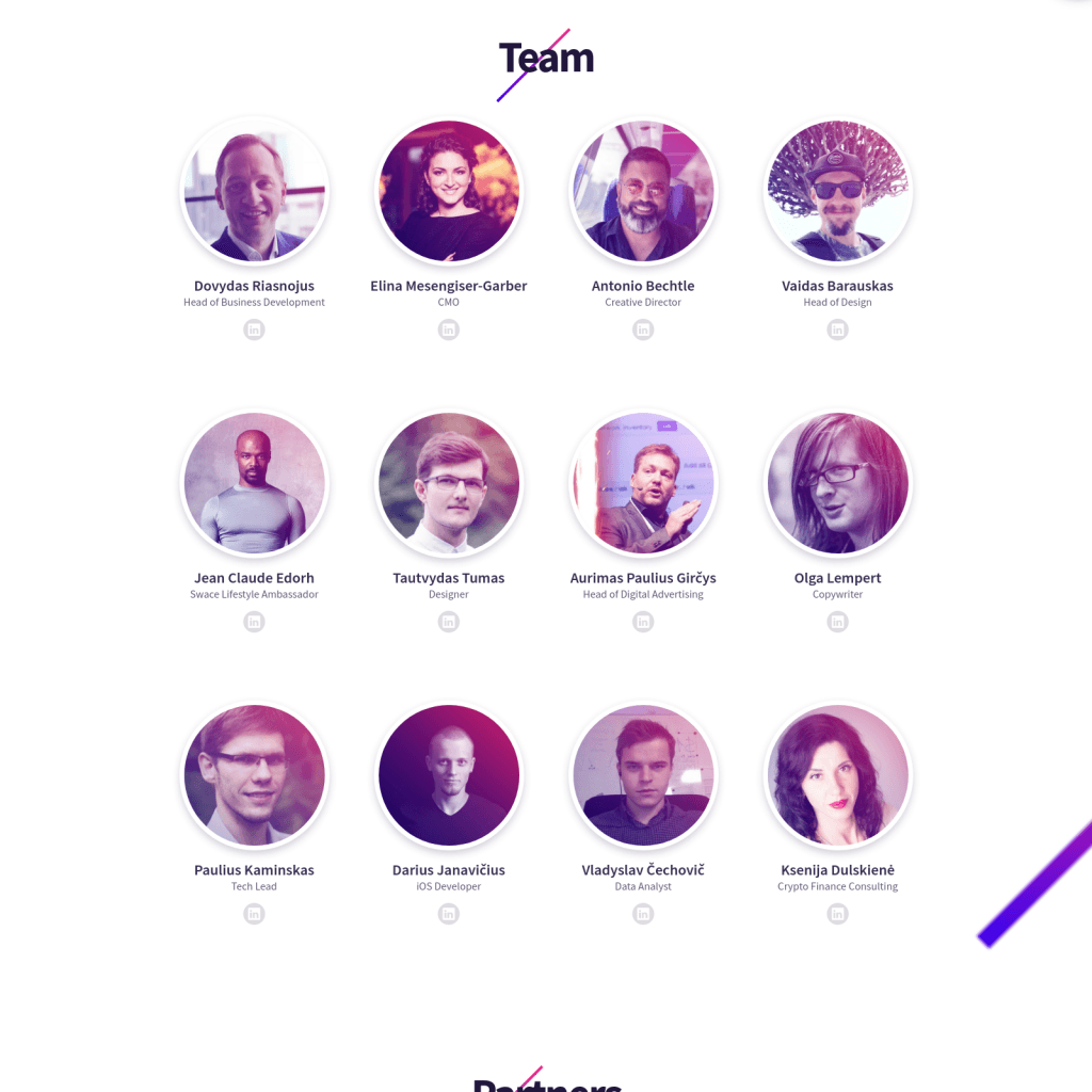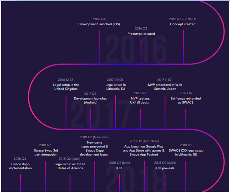 The Swace technology features an app, based on a decentralized blockchain technology. This app which has already been developed up to the beta stage is all about promoting close mutual ties between users and brands in a decentralized ecosystem. The Swace token (SWA) is the universal currency or token used in the ecosystem. In this ecosystem, users are enabled to pay and participate in games and/or purchase goods.