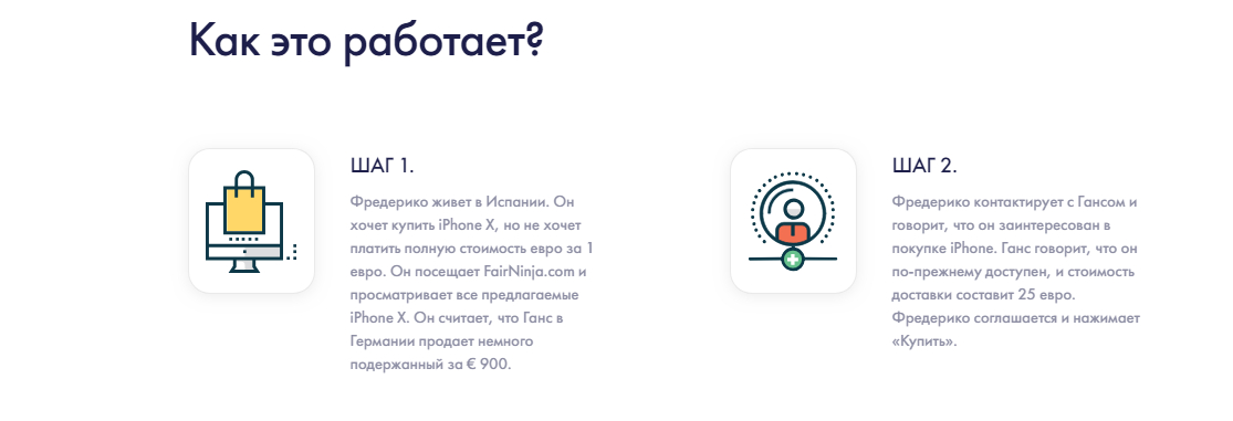 Уникальность данной платформы является ее объемность, она способна охватить весь мир. Так же Fair Ninja является двухсторонней, что сулит выгоду и продавцу и покупателю, ведь выгоду будут иметь обе стороны.
