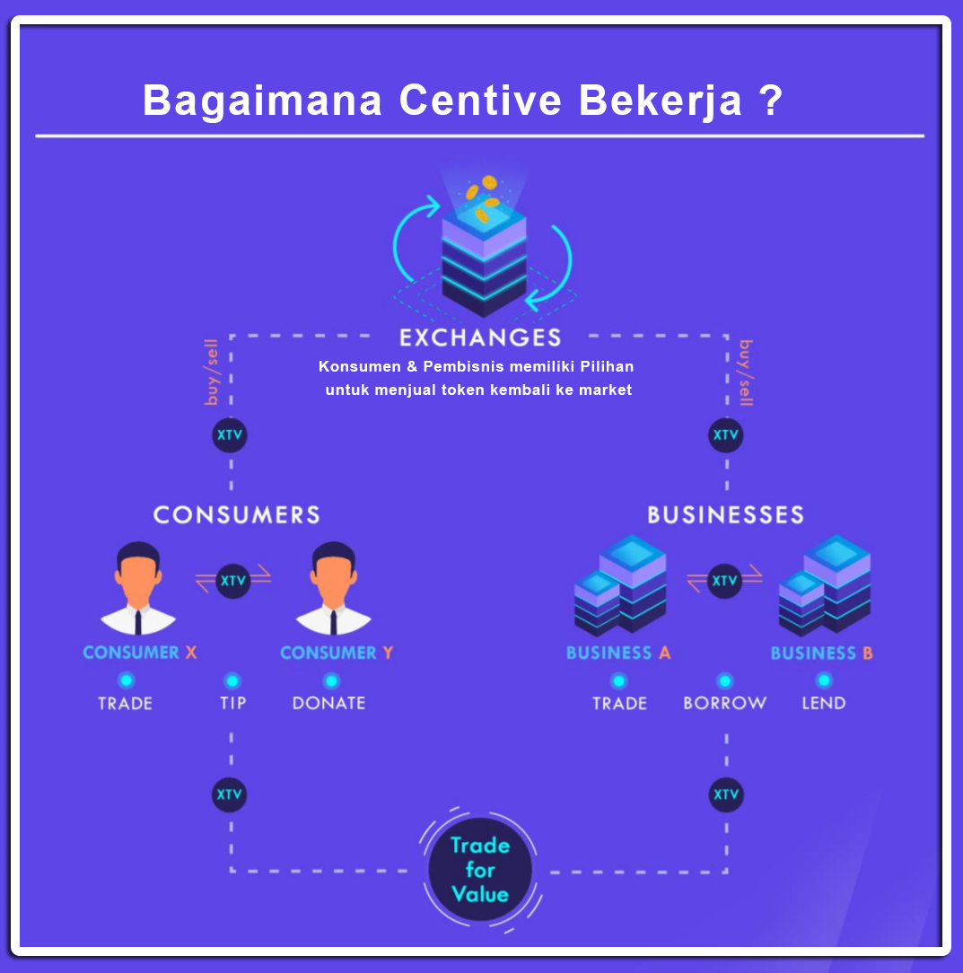 - Pertukaran nilai - Pengguna dapat menggunakan token Centive untuk berdagang, bertukar, memberi tip, membayarnya, dan banyak lagi.
