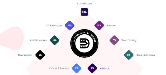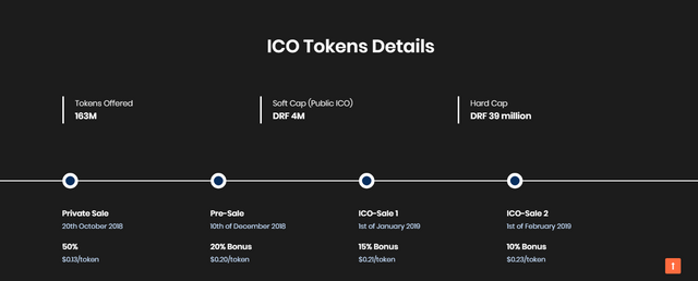 DRF tokens will be pegged at the value of $0.25 USD 50% of token supply in ICO for sale: 162,500,000 DRF.