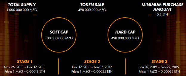 The pre-sale stage has been completed and now the main sales period is underway in three stages of sales. in this sales period, MZG tokens are tossed to the user, you can find out the details of selling MZG tokens in the picture below.