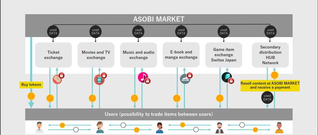 ASOBI MARKET uses blockchain technology to provide a protected system to distribute second-hand content