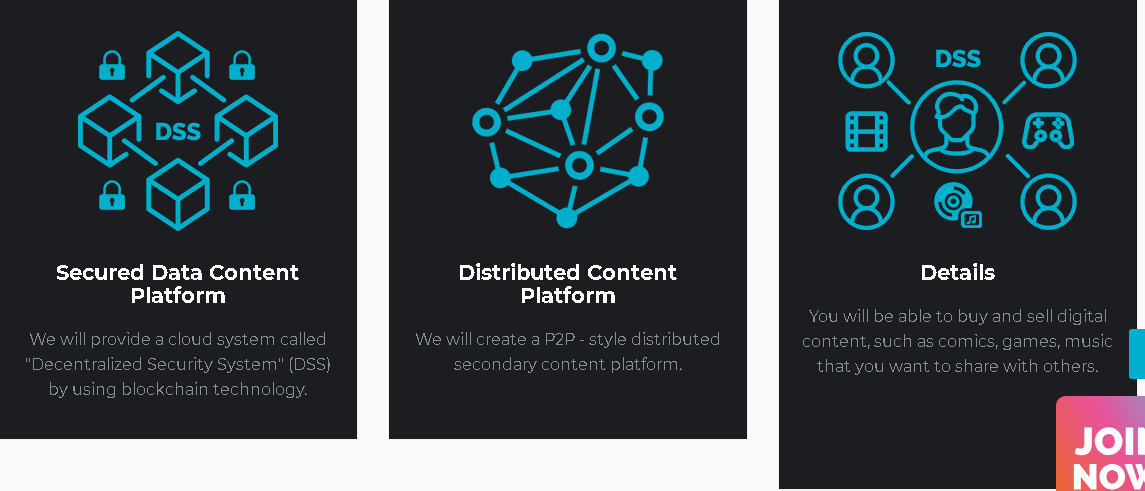 They will provide a secure cloud system called “Decentralized Security System” (DSS) by using blockchain technology.Distributed Content Platform