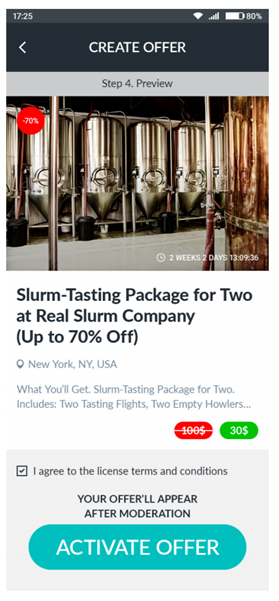 The process works by having a merchant listing their deals on the platform. One offer is activated, it will then be made available for all consumers to see. The trading option is also feasible among IOU holders or simply the consumers themselves. The platform is built in the Blockchain so transparency and efficiency is expected. This maximizes trust between a seller and a consumer.