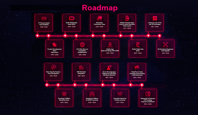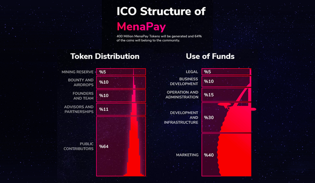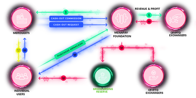 MENACASH will become a token that will be used in the MENAPAY platform which will receive full support from USD and it will also be used for transactions on the MENAPAY platform. This will be used to distribute the income and profits that are entitled to all token holders