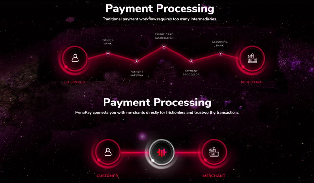 Menapay backed by USDs would change that as 1 Menacash would constantly be equal to 1 USD, this linking of Menacash to the USD would solve the problem of volatility faced by traditional cryptocurrencies and can easily be withdrawal to fiat at any given time by customers and merchants through the Menapay foundation and this would be the currency for transactions on the Manapay platform. Transaction on the Menapay platform would flow from customer to Menapay then to the merchant and vice versa. Menapay also brings easy-to-use and secure solutions such as desktop and mobile wallets, integration APIs and SDKs, reporting and a management dashboard for merchants, Arabic user interfaces. Middle East and Africa region not use in traditional banking tools because of conservative practice of Islam and the poor banking system. MenaPay's will Support them to provide easy and quick onboarding Mobile Payment App and Arabic Language to use safely and enter the cryptocurrency world with Non-Bank and User-Friendly .
