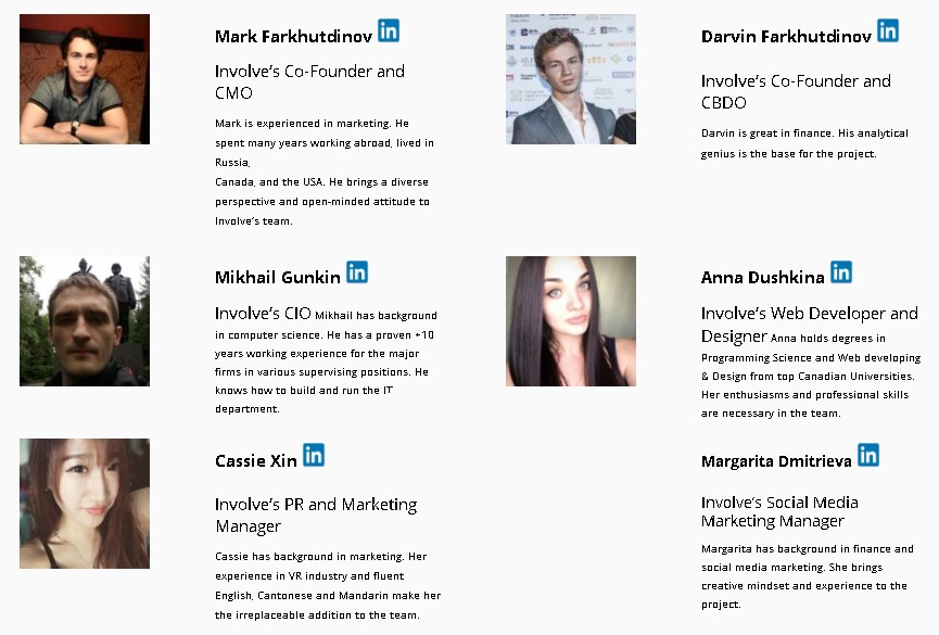 Involve is a unique ecosystem has been able to combine the best ideas and connect them, creating a single platform. Almost everyone will be involved in ecosystem soon: from regular users, to investors. Project team finds a perfect balance where people get with the play, invest, as well as ICO and currency system of crypto.