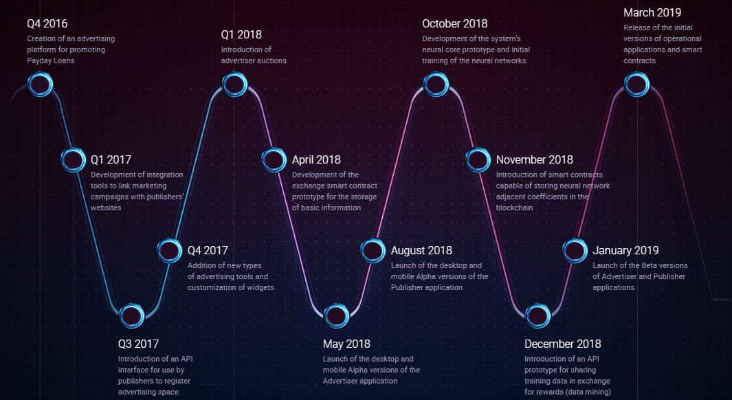 Using neural networks and accumulated data, select the most relevant advertising content at any given moment in time to a particular user, maximizing the probability of obtaining desired results. - Significantly reduce commissions by removing the middlemen