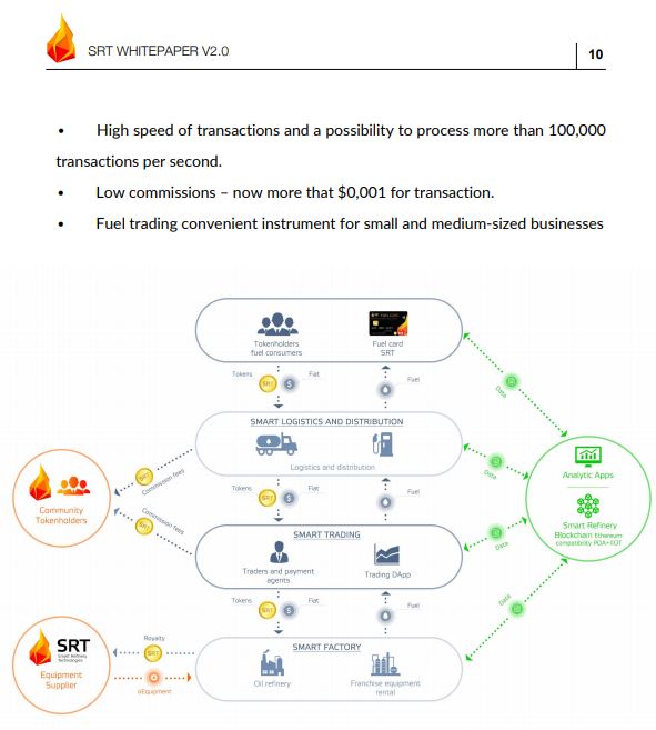 Furthermore, to increase develop the project, a technique was chosen to create a global blockchain platform for integration business of production, trading and supply of motor fuels with using utility-tokens SRT-coin for transactions in a network of small tonnage oil refineries, oil traders, gas areas and SRT fuel cards owners.