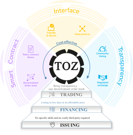Tozex to platforma finansowania aktywów kryptograficznych nowej generacji, oferująca konkretne rozwiązania dla MŚP w celu tokenizacji ich istniejącej działalności. Tozex zapewnia im narzędzia do wydawania, zarządzania i wyceny ich nowego zasobu kryptograficznego. Tozex dostarcza im narzędzia takie jak tokenPad + InvestPad + sekcja Trading, aby stworzyć metodę tak najłatwiejszą, jak to tylko możliwe, przy jednoczesnym poszanowaniu przejrzystości wszystkich procesów.
