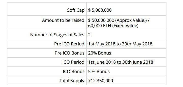 ● ICO Start date: 01 June 2018