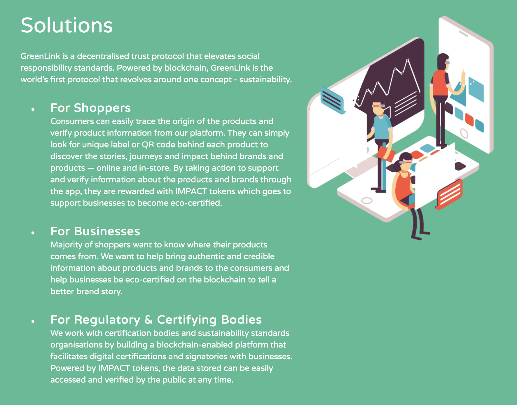 GreenLink represents the digitization of certifications and relevant information about products and businesses in the sustainability space. Consumers can use the tokens in exchange for physical goods and services, provide feedback and ratings on sustainable businesses and obtain data about products via QR codes or a web interface. Businesses transact our token to create, access and validate data stored on the blockchain. GreenLink is a Singapore-based technology company with over 3 years of track record and experience in the ethical and sustainability consumer space, having co-founded Boxgreen — a B-Corp certified, profitable and sustainable snack e-tailer that delivers healthier, portion-controlled snacks to homes and offices.