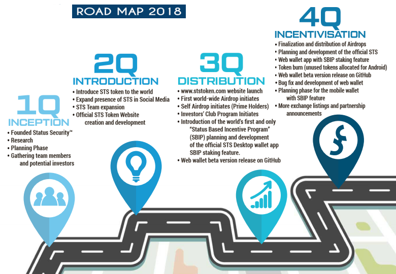 - Integration Phase – study and creation of Status Security’s own blockchai will take place. The STS Reward programme will be adjusted significantly, yet a new reward programme shall be born. New partners and exchange listings will be announced much more frequently. Price volatility of STS at this point would be so low that it would be labeled as one of the most stable and consistently growing digital currencies available.